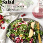 A super festive salad for any holiday table! This Kale and Radicchio Salad with Cranberry Vinaigrette is just as tasty as it is pretty. With tons of harvest-themed toppings and a punchy fresh cranberry based vinaigrette to finish it off!